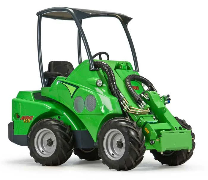Notre chargeur est fourni d’un godet de 105cm et d’une fourche à palette.